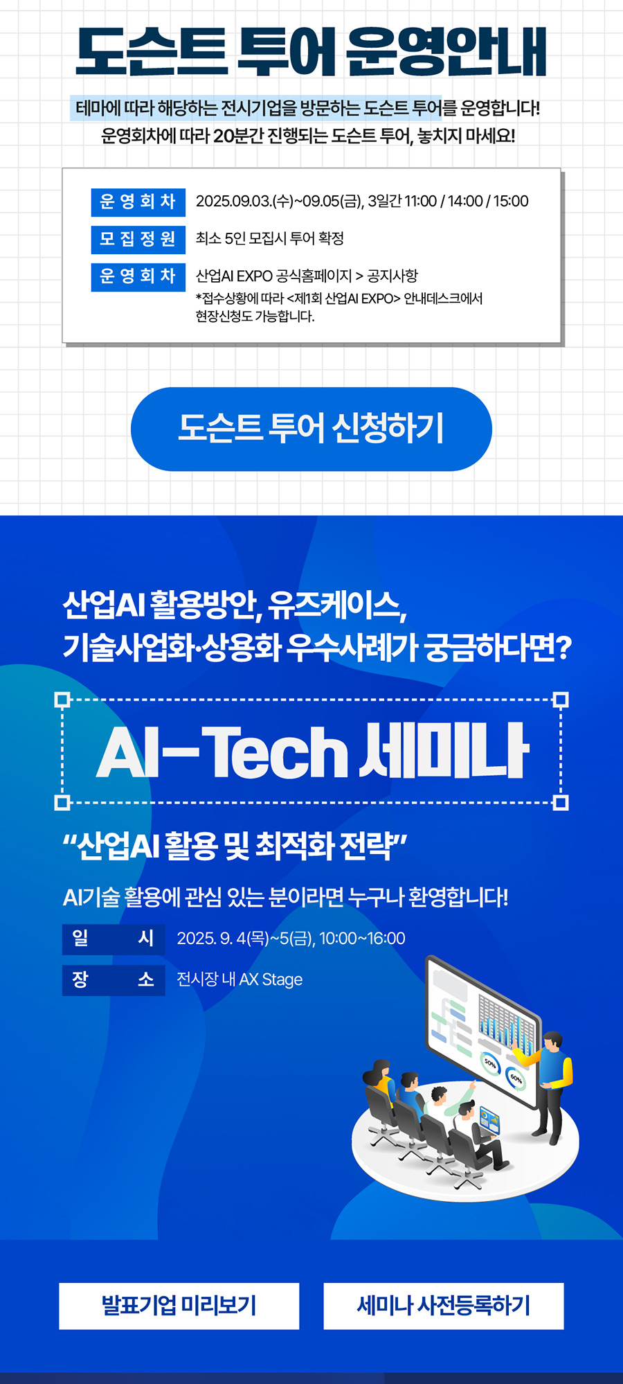 | [제1회 산업AI EXPO] 관련학과생 무료단체등록, 도슨트투어 신청안내 | ||