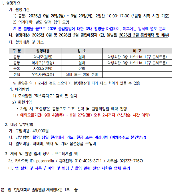 | [학부] 2025학년도 2학기 서울캠퍼스 졸업앨범 최종 촬영안내 | ||