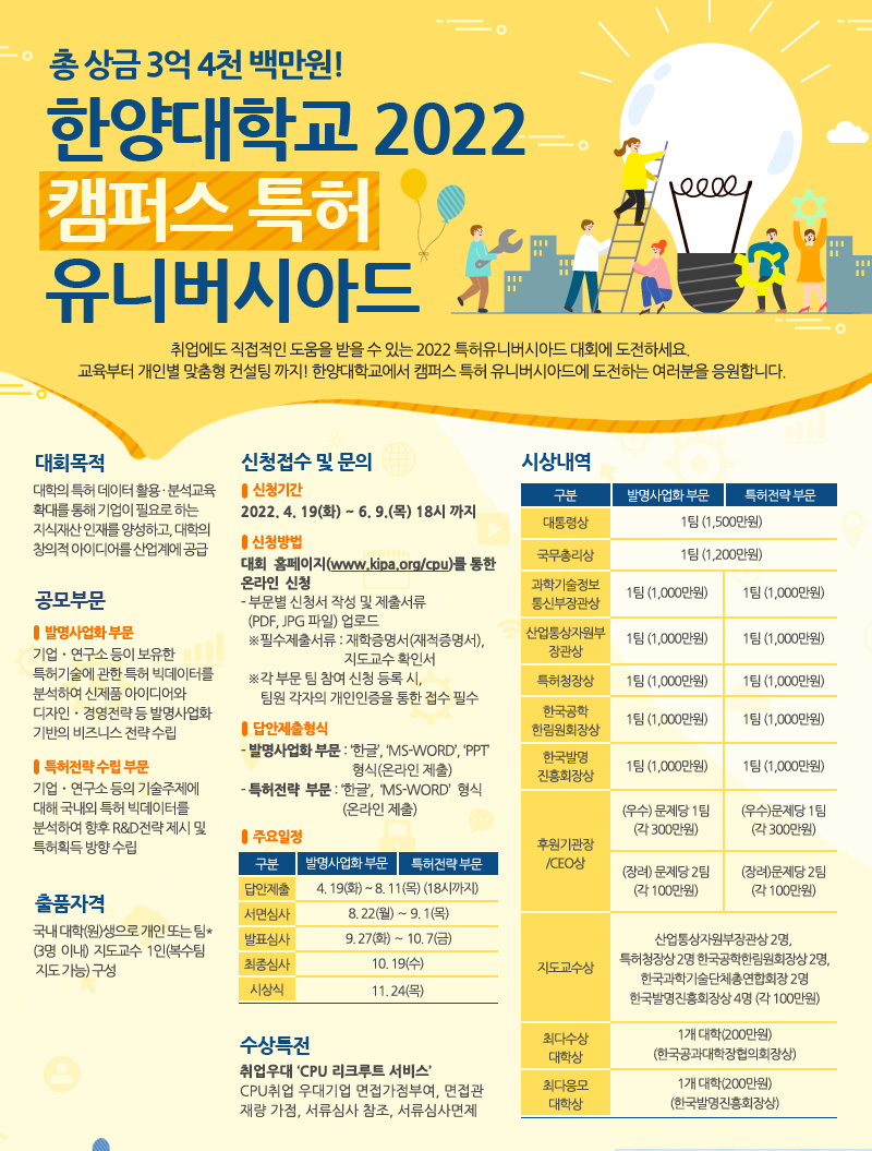 | [LINC+사업단] 2022 캠퍼스 특허 유니버시아드 대회 참가팀 모집 | ||