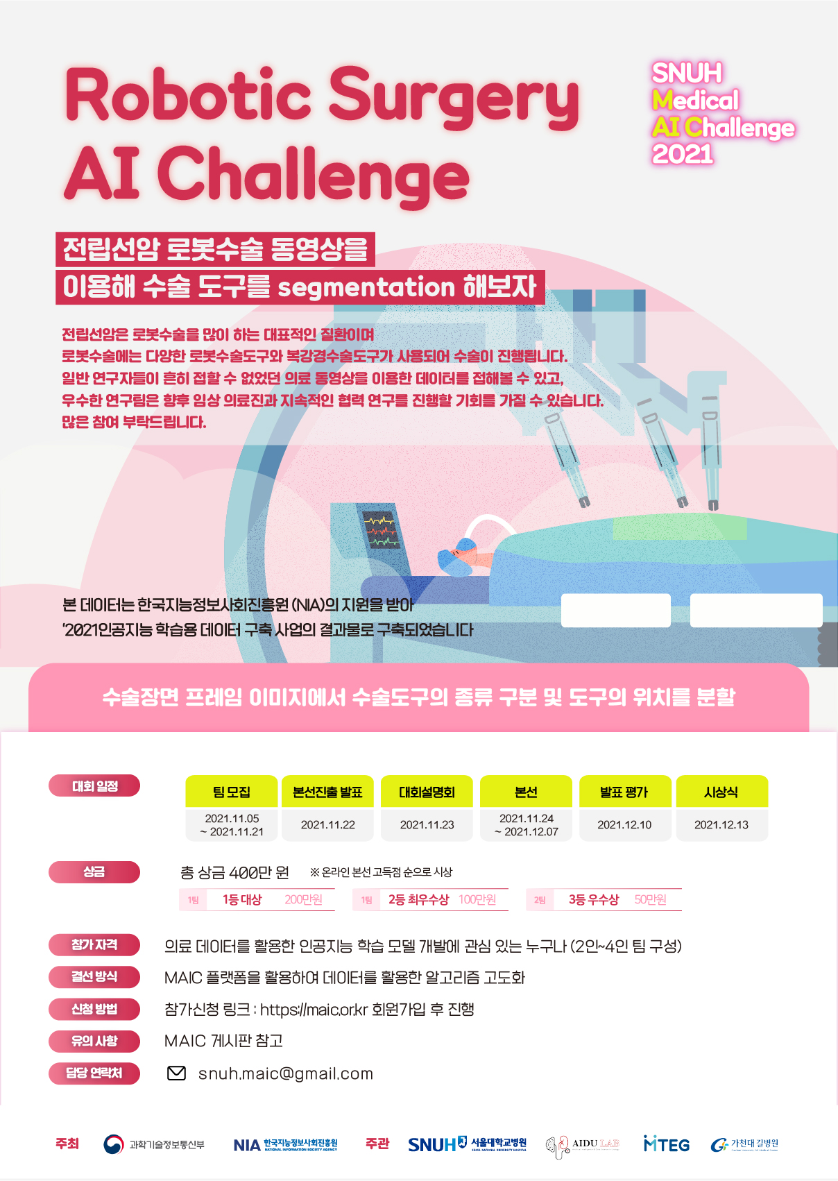 | [서울대병원] Medical AI Challenge 2021 (참가신청 ~ 11/21, 11/28) | ||