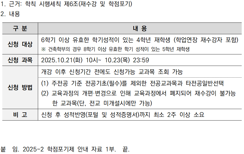 | [학부] (학사운영팀) 2025-2 학점포기제 시행 안내 | ||