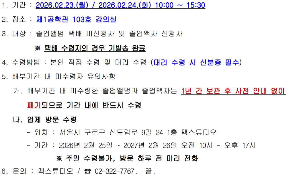 | [학부] 2025학년도 졸업앨범 현장 수령방법 안내 | ||